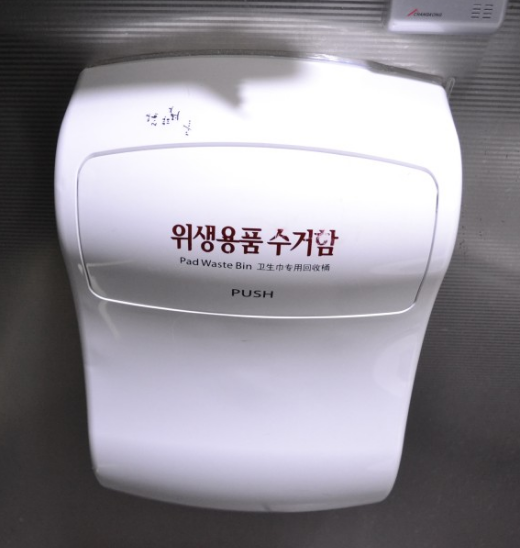 그래서 여자화장실 대변기칸은 위생용품 수거함이 따로 벽에 부착되어 있다.